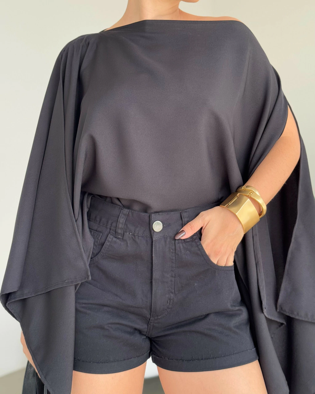 Clássico e indispensável, esse shorts jeans preto é perfeito para o dia a dia. Possui cintura média, cinco bolsos funcionais, fechamento por botão e zíper, além de barra desfiada que adiciona um toque moderno ao visual. Ideal para compor desde looks casuais com t-shirt até produções mais estilosas com camisas ou croppeds.