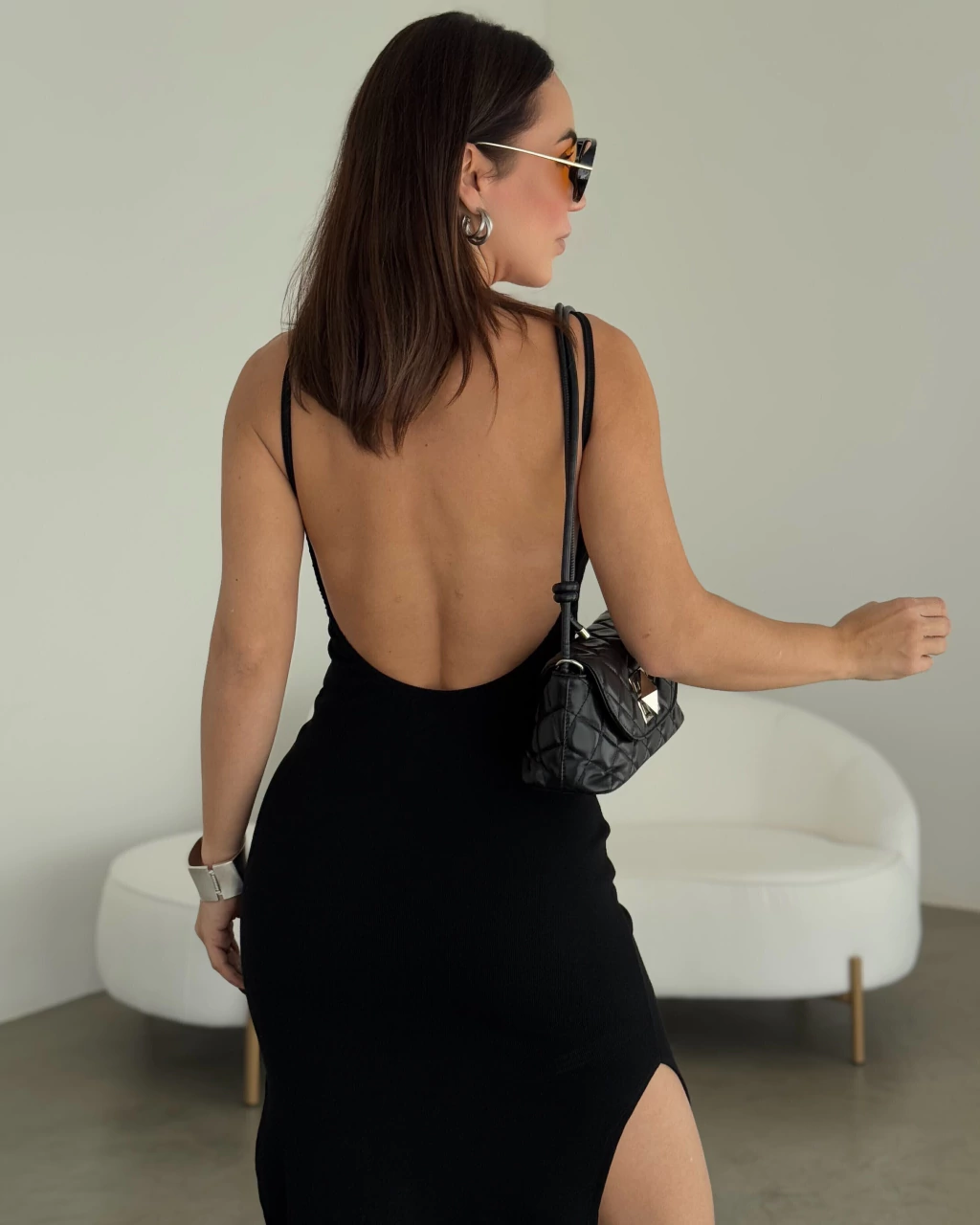 Um vestido que é pura elegância e atitude. Confeccionado em tecido canelado com caimento ajustado, valoriza a silhueta com delicadeza. O franzido no busto cria um detalhe charmoso, enquanto a fenda lateral garante movimento e sensualidade. O destaque fica para as costas abertas, que transformam a peça em uma escolha marcante para ocasiões especiais. Possui bojo.